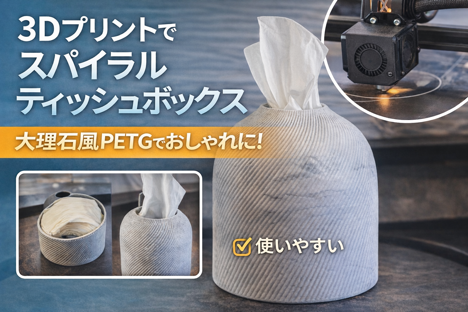 3Dプリントで作るスパイラルティッシュボックス